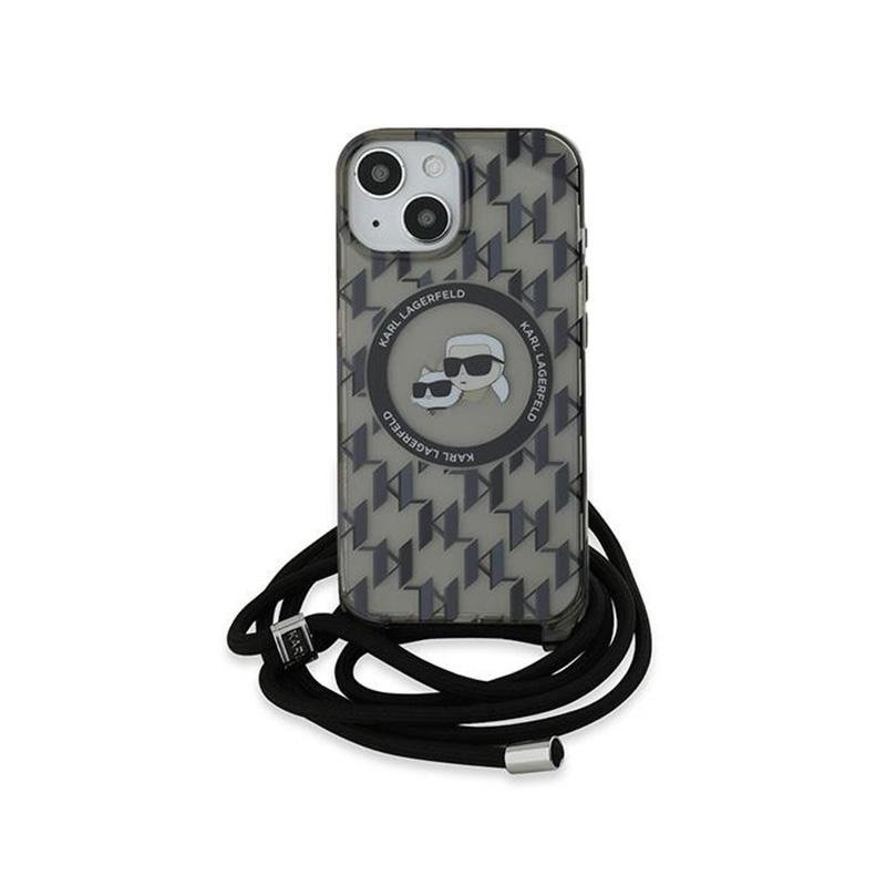 Karl Lagerfeld IML Crossbody Monogram Karl & Choupette Head MagSafe - Hülle für iPhone 15 / 14 / 13 (schwarz)