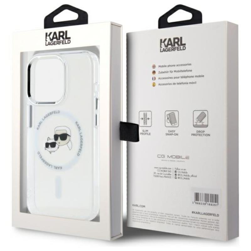 - Karl Lagerfeld IML Metal Karl & Choupette Head MagSafe ist ein elegantes, transparentes Etui, das mit der Grafik der schönen Katze Choupette und dem Logo des Designers verziert ist. Sie besteht aus dauerhaftem, transparentem Polycarbonat mit flexiblen Pol