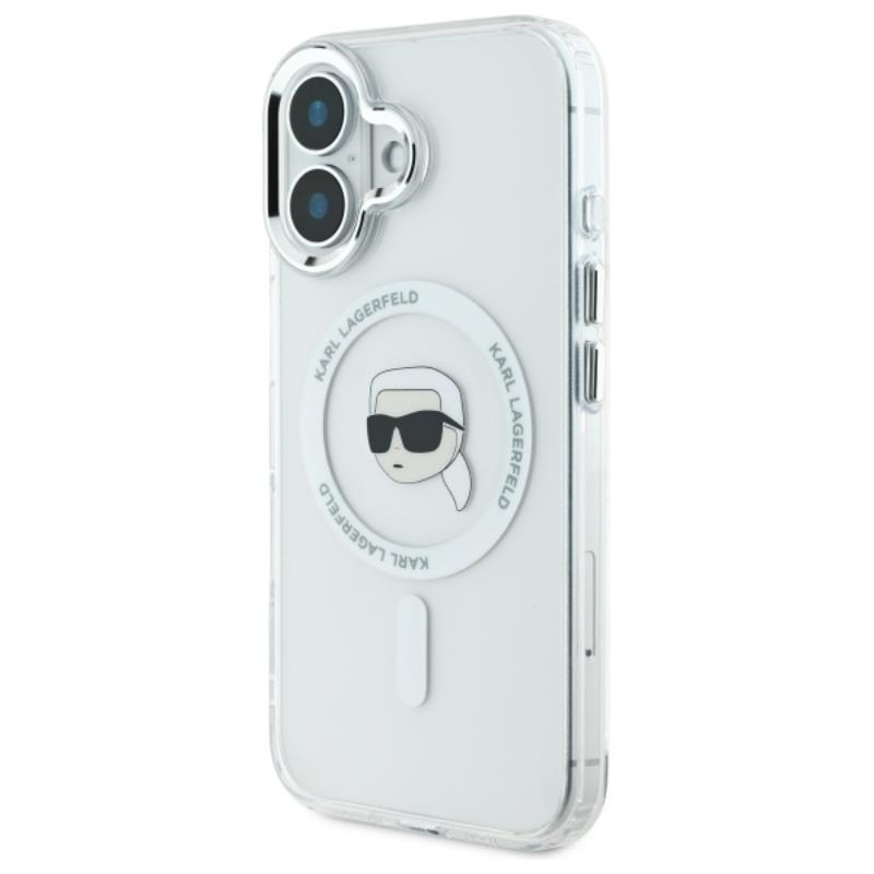 Karl Lagerfeld IML Metal Karl Head MagSafe - Hülle für iPhone 16 Plus (weiß)