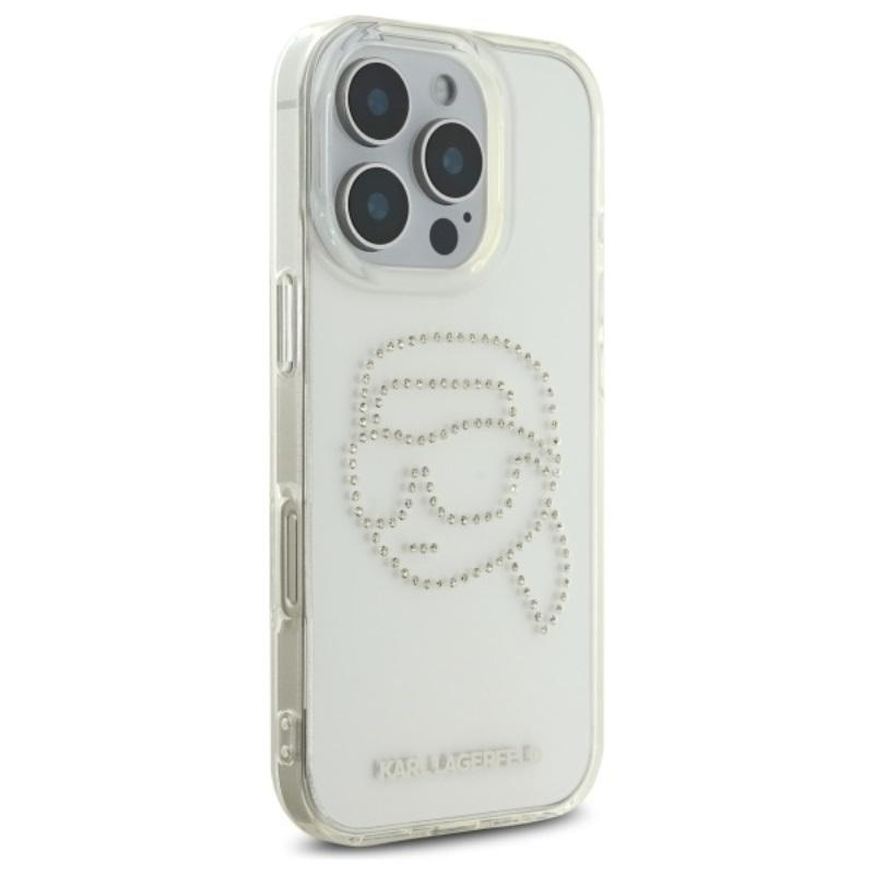 Karl Lagerfeld IML Rhinestones Karl Head - Hülle für iPhone 16 Pro Max (transparent)