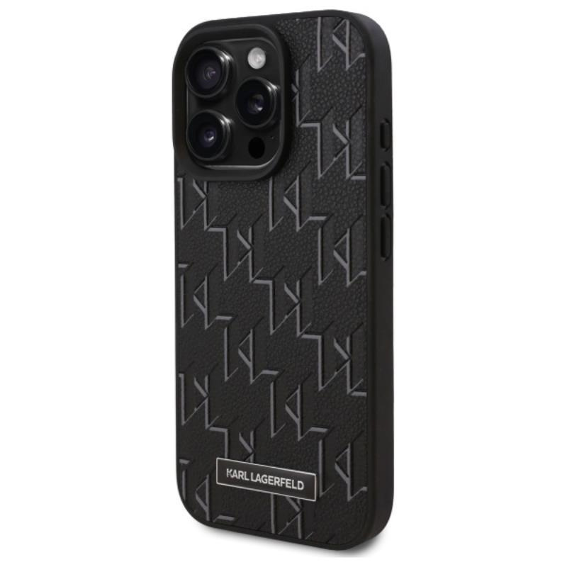 Karl Lagerfeld Leather Monogram Metal Logo MagSafe - Hülle für iPhone 16 Pro Max (schwarz)