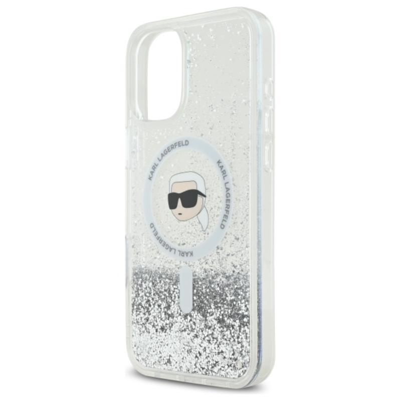 Karl Lagerfeld Liquid Glitter Karl Head MagSafe - Hülle für iPhone 16 Plus (transparent)