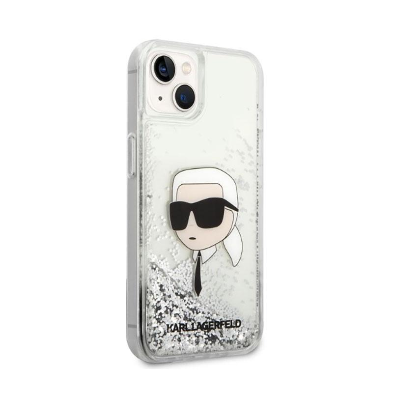 Karl Lagerfeld Liquid Glitter NFT Karl's Head - Hülle für iPhone 14 Plus (Silber)