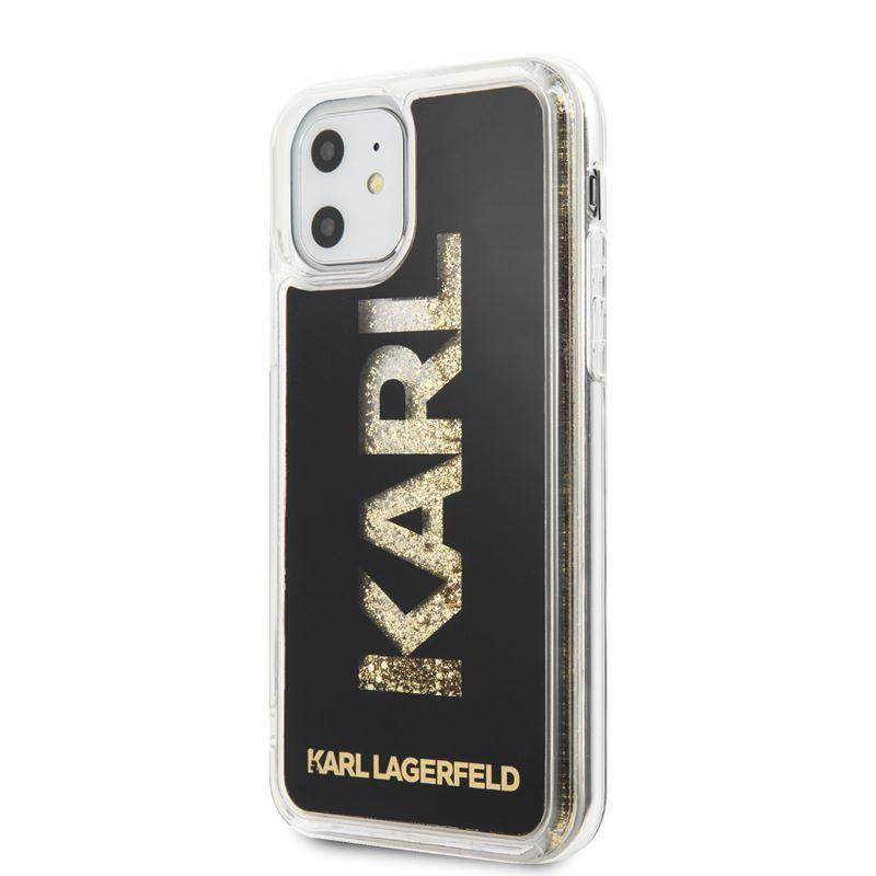 Karl Lagerfeld Logo Karl Liquid Glitter - iPhone 11 Hülle (Schwarz/Gold Glitter)
