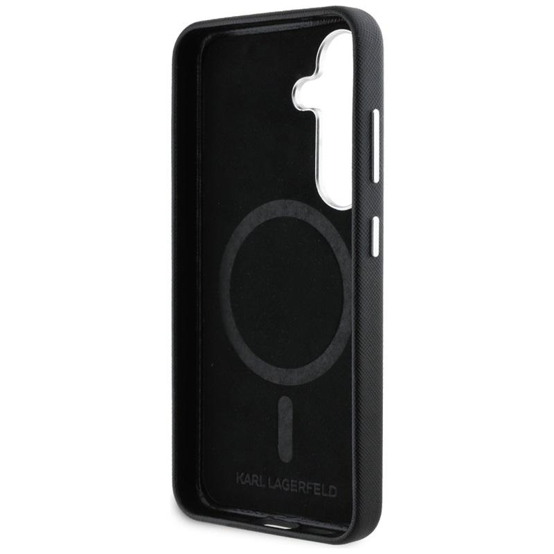 Karl Lagerfeld Saffiano Full Wrapped Elongated Metal Logo MagSafe - Hülle für Samsung Galaxy S25 (schwarz)