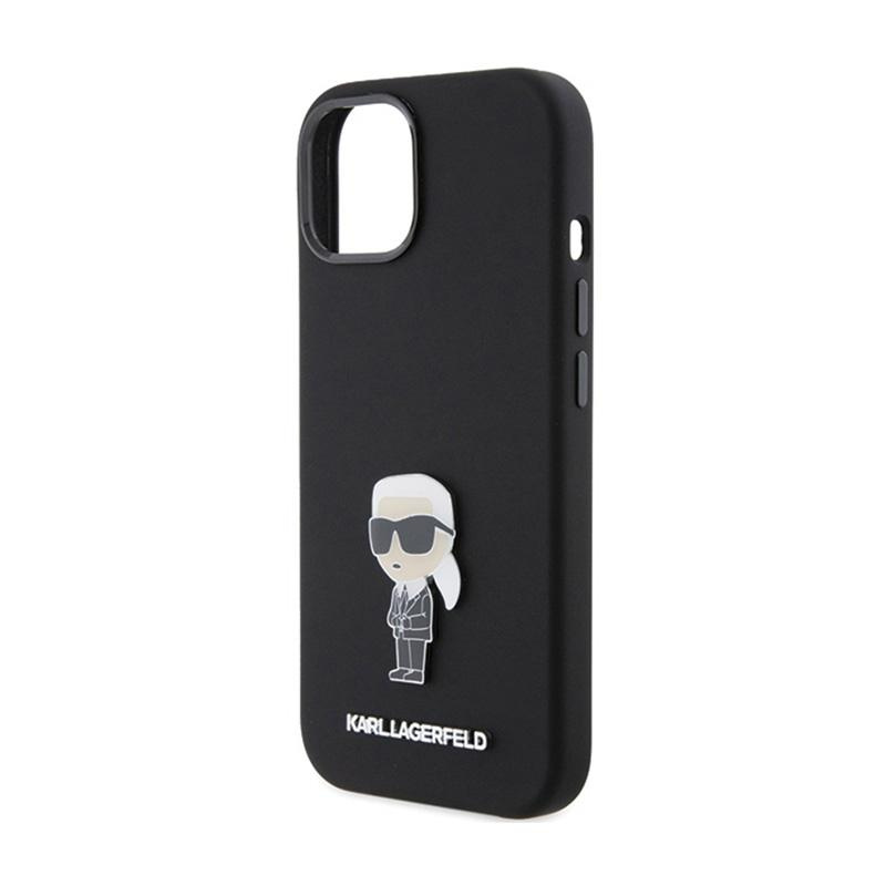 Karl Lagerfeld Silicone Ikonik Metal Pin - iPhone 15 Tasche (Schwarz)