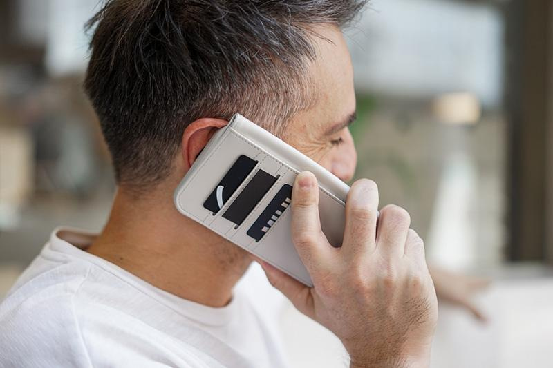 • Die Moshi Business-Tasche mit Brieftaschenfunktion ist eine praktische und elegante Ergänzung für das iPhone 14 Plus. Das Etui ist mit 3 Kartenfächern und einem länglichen Bargeldfach in Form von klassischen Geldscheinen ausgestattet. Die magnetische Rück