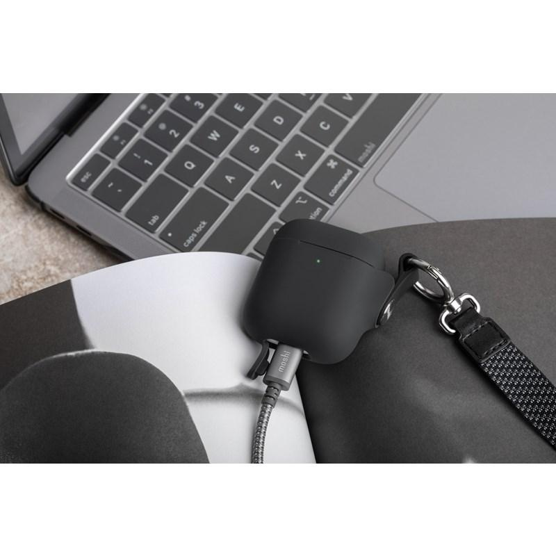 Moshi Pebbo - AirPods-Tasche mit abnehmbarer Handschlaufe (Shadow Black)