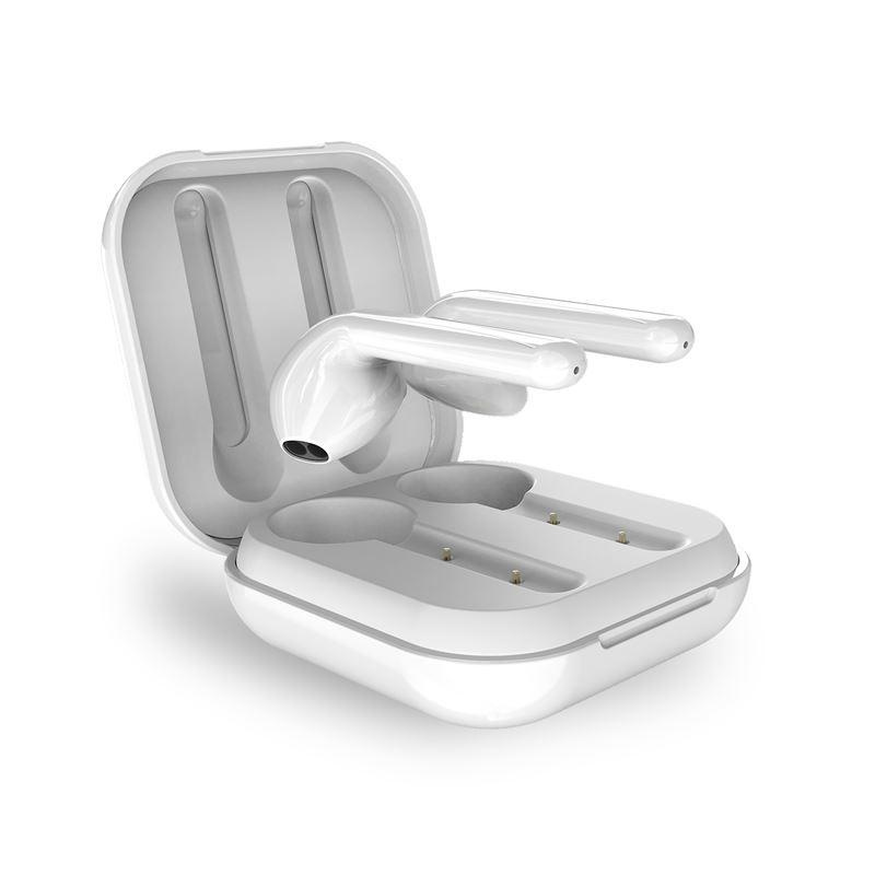 - Ergonomische, kabellose In-Ear-Kopfhörer in einem kompakten Ladeetui zur Verwendung mit Smartphones und Tablets.