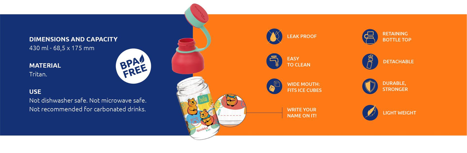 Das ideale Modell für den Transport einer Vielzahl von Erfrischungsgetränken. Durch die zweistufige Öffnung können größere Obststücke und Eiswürfel frei eingefüllt werden.