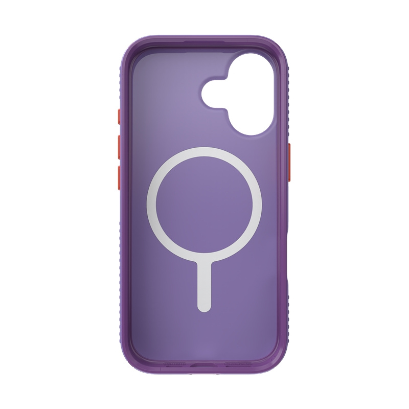 Speck Presidio® Lux Grip MagSafe® ist eine Hülle mit integriertem Magneten, die mit Apple MagSafe®-Zubehör kompatibel ist. Die matte Oberfläche in einem eleganten Lila-Ton, ergänzt durch orangefarbene Akzente, verleiht dem Gerät einen modernen und stilvollen Charakter und unterstreicht dessen Design. Sein einzigartiges Design.