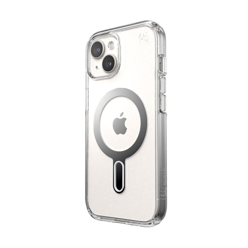 Speck Presidio Perfect-Clear ClickLock & MagSafe - Hülle für iPhone 16e / iPhone 15 / iPhone 14 / iPhone 13 (Transparent / Chrom-Finish / Serene Silver)