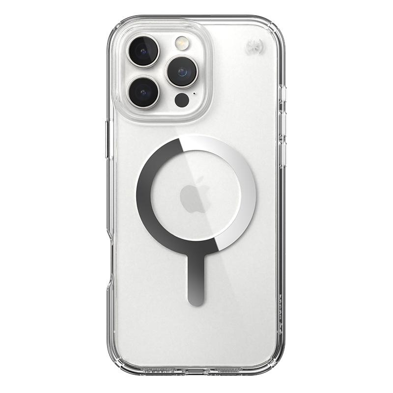 Speck Presidio Perfect-Clear MagSafe - iPhone 16 Pro Max Hülle (Transparent / Chrom-Finish / Serene Silver)
