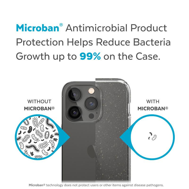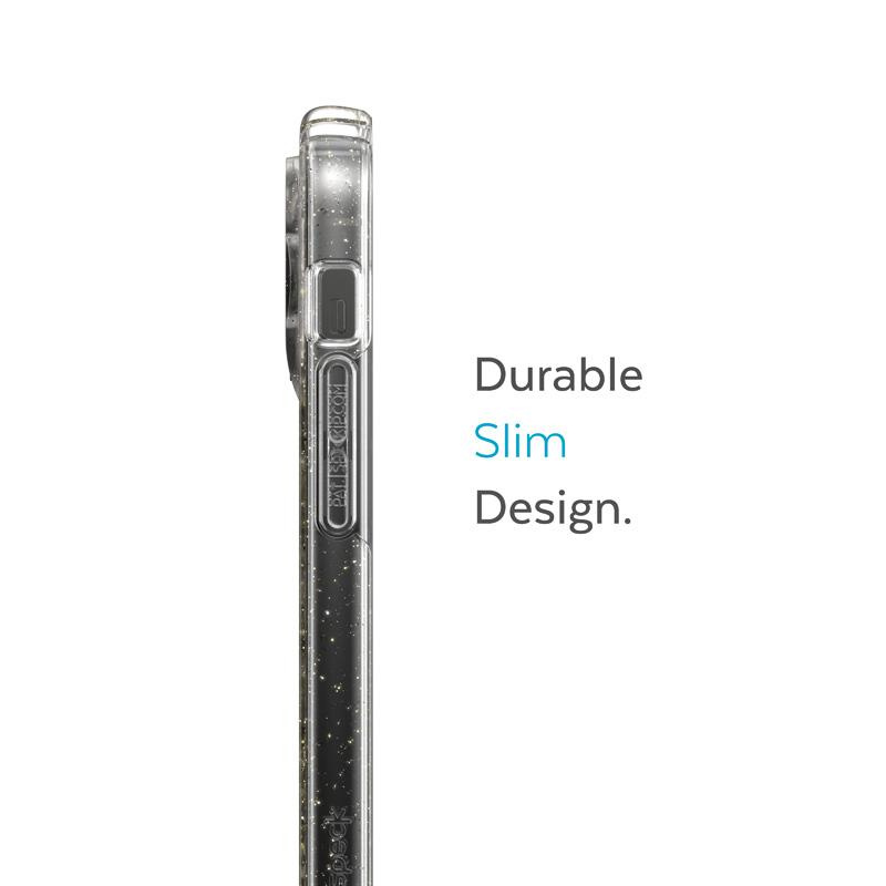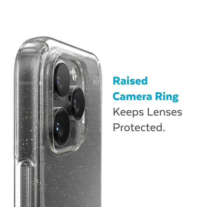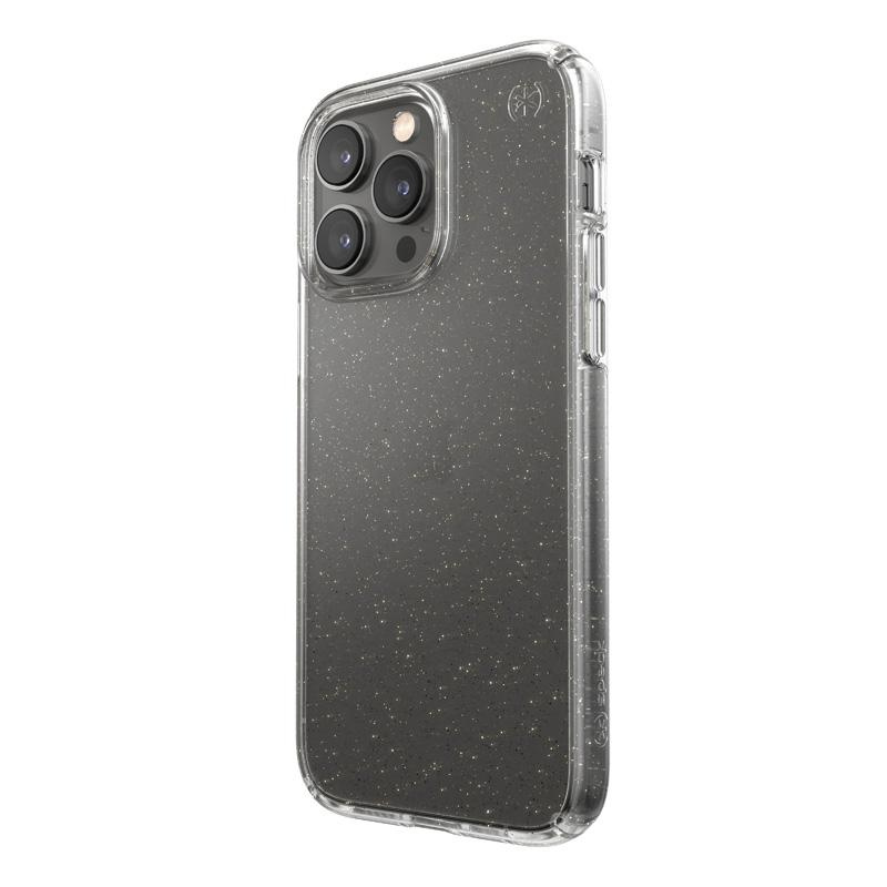 Speck Presidio Perfect-Clear mit Glitter - iPhone 14 Pro Max Hülle mit MICROBAN-Beschichtung (Klar / Gold Glitter)