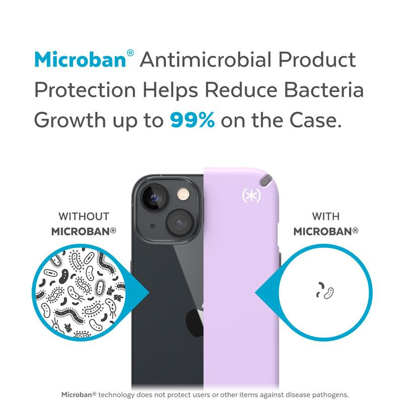 Ultra-robuste Hülle für das iPhone 14 Plus mit antimikrobiellem Schutz von MICROBAN® - dem weltweit führenden Anbieter von antimikrobiellen Lösungen mit einem breiten Portfolio von über 25 zugelassenen Technologien. Der in die Struktur des Presidio2 Pro-Gehäuses integrierte Wirkstoff stoppt 99 % der Bakterien, die sich auf der Oberfläche ansammeln. Die MICROBAN®-Technologie bietet somit lebenslangen Schutz vor Bakterien, die Verfärbungen und unangenehme Gerüche verursachen.