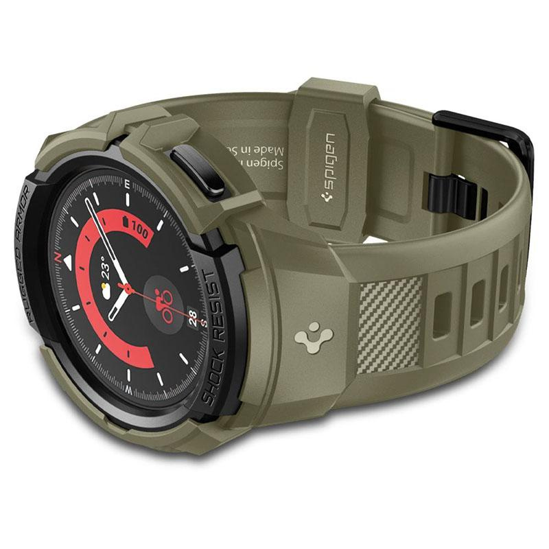 Spigen Rugged Armor Pro - Armband + Tasche für Samsung Galaxy Watch 5 45 mm (Vintage Khaki)