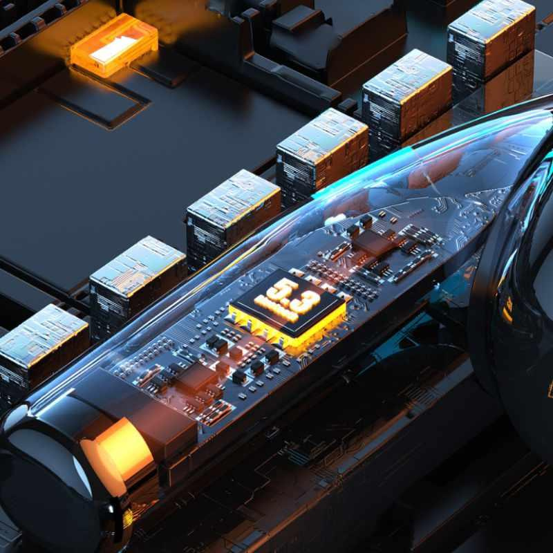 WEKOME VB06 True Wireless In-Ear-Kopfhörer mit raumschiffförmigem Ladeetui mit einer Kapazität von 250 mAh. Die Kopfhörer nutzen die neue Version der Bluetooth 5.3-Funktechnologie, die Verzögerungen und Störungen reduziert und die Akkulaufzeit verbessert.