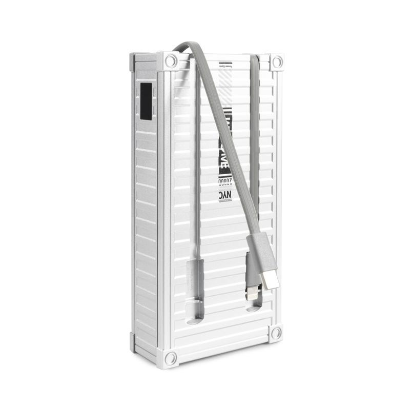 WEKOME WP-341 Container Series - Powerbank 20000 mAh Super Charging mit integriertem USB-C & Lightning PD Kabel 20W + QC 22.5W (Silber)