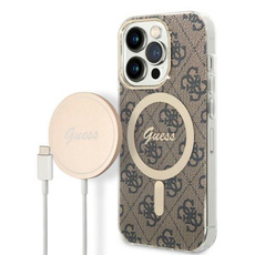 Guess Bundle Pack MagSafe 4G - MagSafe iPhone 14 Pro Case + Charger Set (brown/gold)