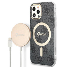 Guess Bundle Pack MagSafe 4G - MagSafe iPhone 12 / iPhone 12 Pro case + charger set (black/gold)