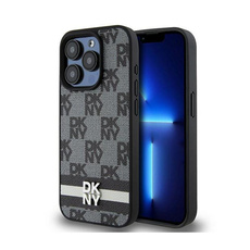 DKNY Leather Checkered Mono Pattern & Printed Stripes - iPhone 15 Pro Max Case (black)