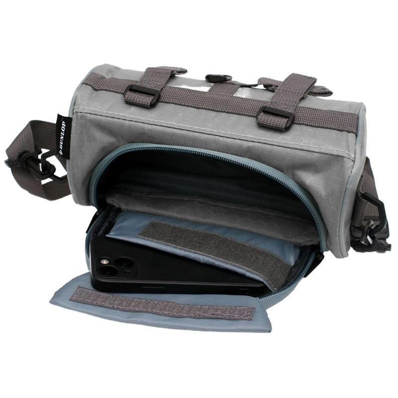 Dunlop's handlebar pannier/bike bag is an essential accessory for your bicycle that will keep you safe and comfortable as you travel through unfamiliar terrain. When you mount this bag on the handlebars of your bicycle, you will find a transparent pocket in the central area - an ideal storage compartment for your phone or navigation, making it easier, for example, to track your route on the map on your phone.