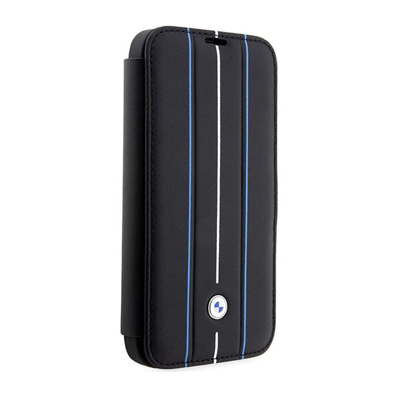 BMW Booktype Leather Stamp Blue Lines - Case for iPhone 14 Pro (Black)