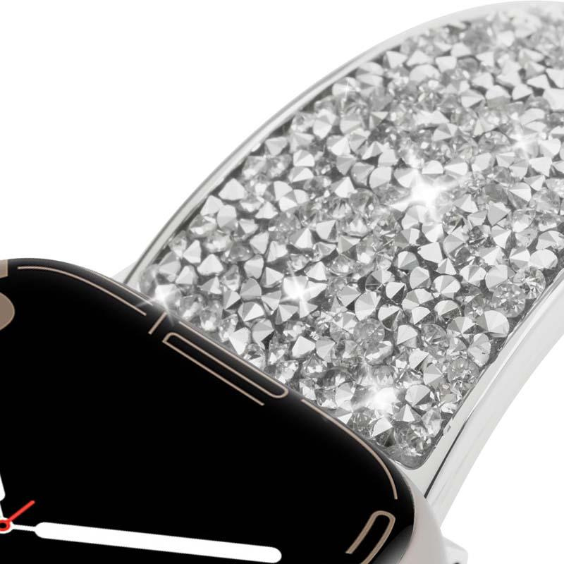 Elegant bracelet for Apple Watch made of stainless steel decorated with real crystals.