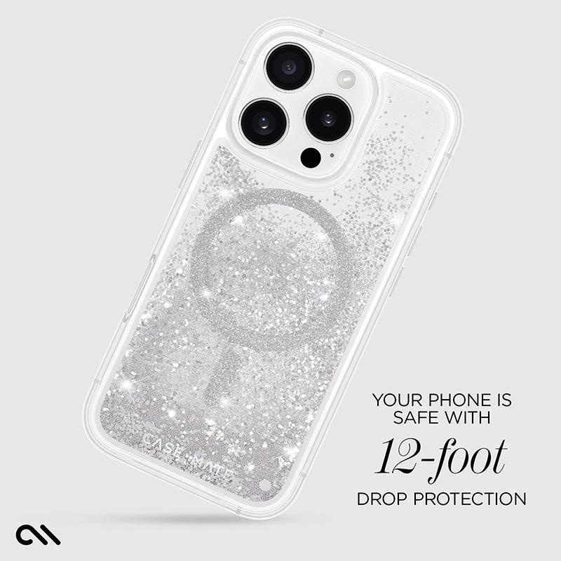 - The Case-Mate Waterfall MagSafe case is a true work of art that impresses with its unique, shiny design. The inside of the case is filled with shimmering glitter, which creates a liquid waterfall effect that comes to life with every movement of the phone.