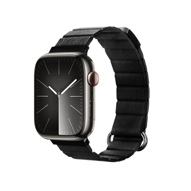 Crong Eclipse - Magnetic Leather Apple Watch Band 44/45/46/49 mm (Black)