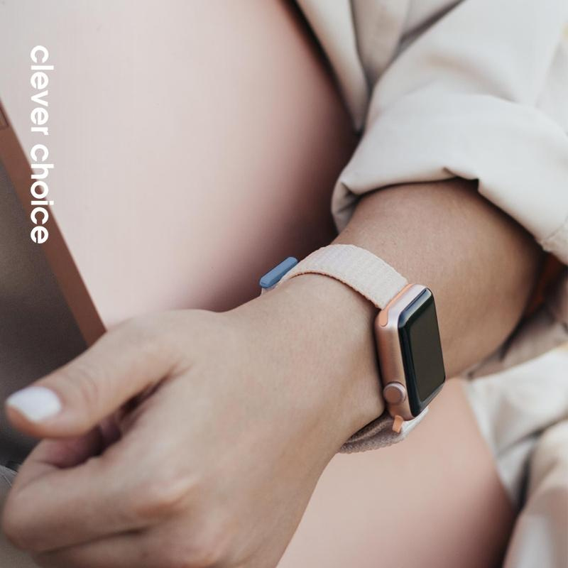 - Breathable nylon fiber sports band for Apple Watch with 38/40/41/42 mm envelope size. The special weave of nylon creates a soft lining on the inside that does not irritate the skin and wicks away moisture. The Nylon Band is equipped with