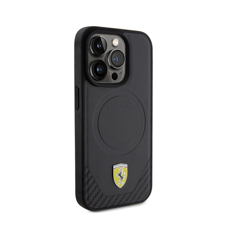 Ferrari Carbon Metal Logo MagSafe - Case for iPhone 15 Pro (Black)