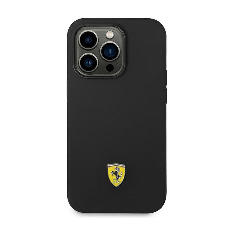 Ferrari Liquid Silicone Case Metal Logo MagSafe - iPhone 14 Pro Max Case (Black)