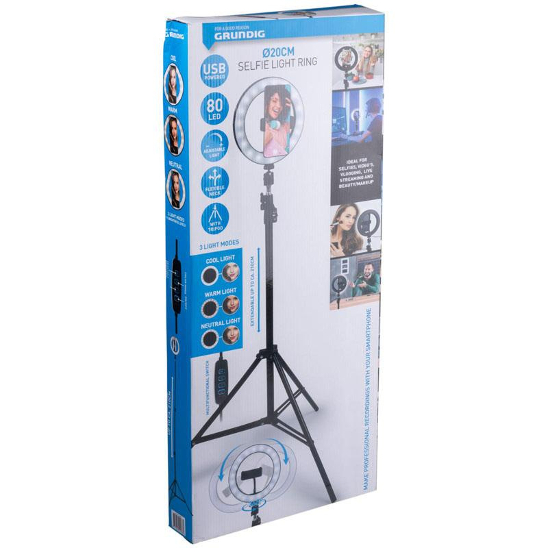 - With Grundig's tripod selfie light, you'll always have the best lighting for your selfies, vlogs, tutorials, videos for TikTok, YouTube or Instagram, and other recordings or when applying makeup. Improves light quality