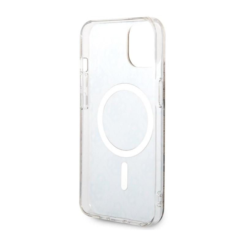 Guess 4G MagSafe is a high-quality, elegant case that provides protection against scratches and damage to your device. The case is distinguished by high quality workmanship, amazing functionality and beautiful design. The entire front panel of the case is decorated with a 4G motif. An additional decoration is the iconic gold Guess logo, which emphasizes the sophisticated aesthetics of the case. The case provides access to all function keys, sockets and ports of the phone without restricting its functionality, so you can fully enjoy your smartphone. The case has a magnetic ring inside that is compatible with MagSafe accessories, guaranteeing easy and fast charging. Product features: - Perfect fit - Made of durable PC/TPU - Built-in magnetic ring compatible with MagSafe charger - 4G theme - Protects your phone from scratches on the back and sides - Shiny Guess logo - Access to all the phone's function keys, slots and ports - Case manufactured under Guess license *NOTE: MagSafe charger is not part of the set.