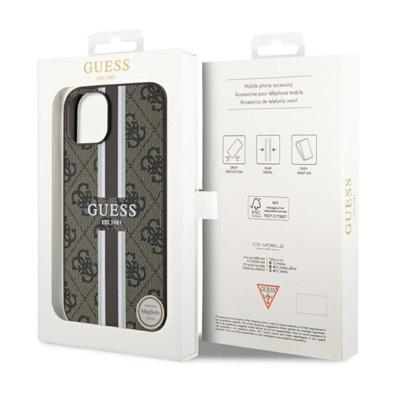 Guess 4G Printed Stripes MagSafe - Case for iPhone 14 Plus (Brown)