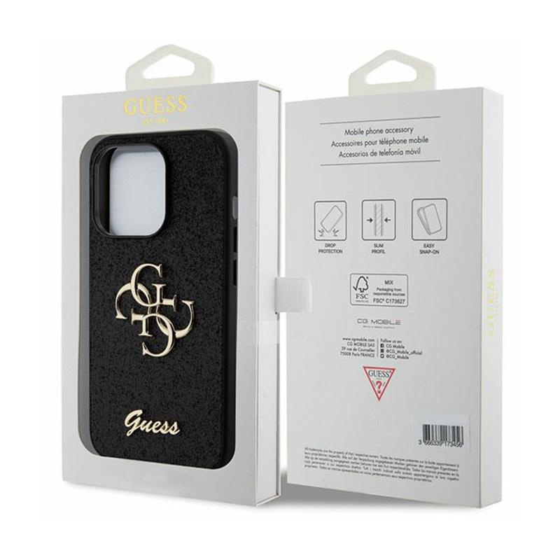 Guess Glitter Script Big 4G - Case for iPhone 15 Pro Max (Black)