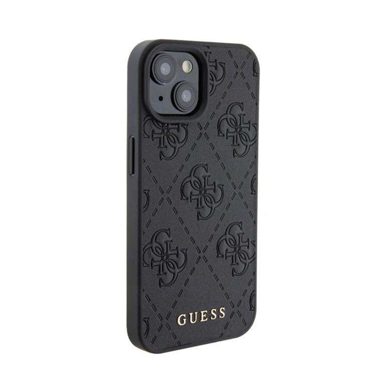 Guess Leather 4G Stamped - Case for iPhone 15 (Black)