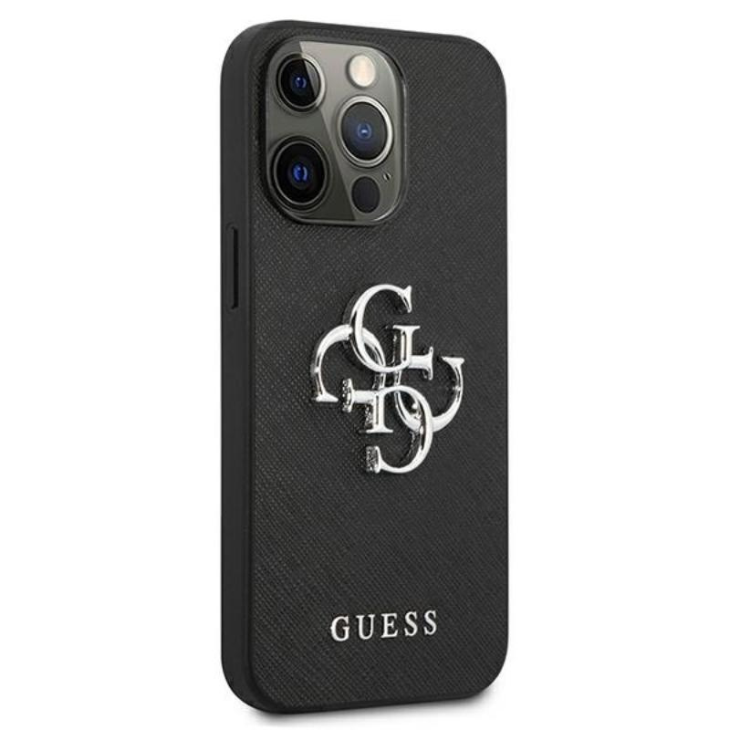 Guess Saffiano 4G Big Silver Logo - Case for iPhone 13 Pro (Black)