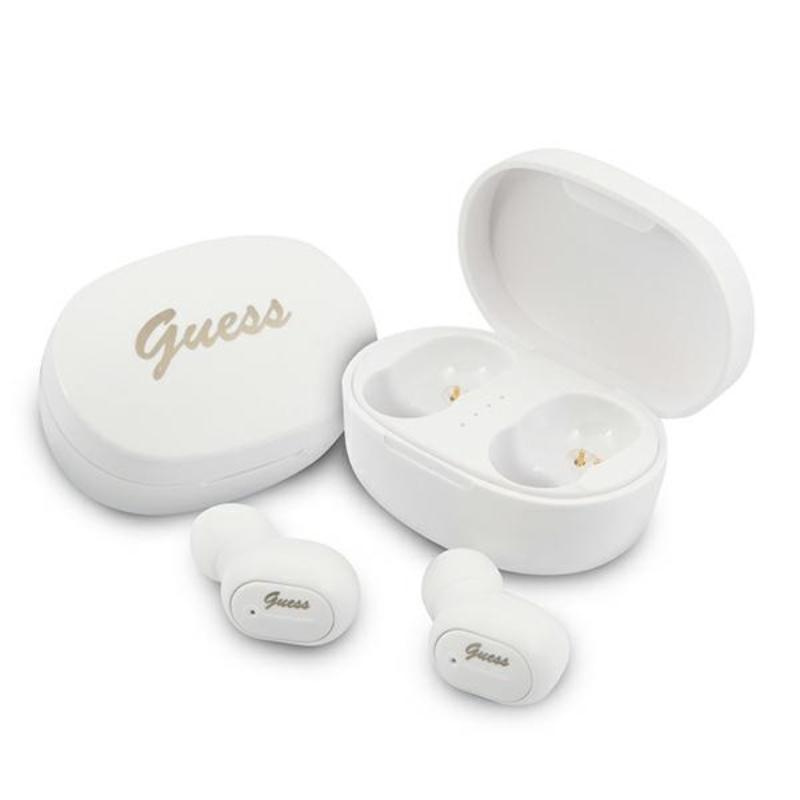 Guess Script Logo - TWS Bluetooth headphones + charging case (white)