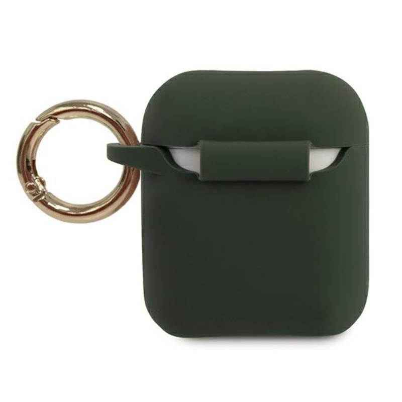 - AirPods earphone case made of high-quality silicone to protect against damage and scratches. Perfect fit. All decorated with a large gold triangular Guess logo. In addition, a detachable carabiner is included to enablel