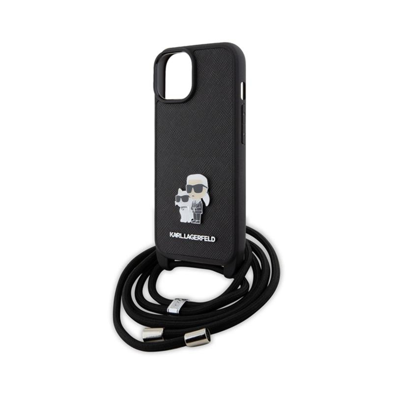 Karl Lagerfeld Crossbody Saffiano Metal Pin Karl & Choupette - Case for iPhone 15 (Black)