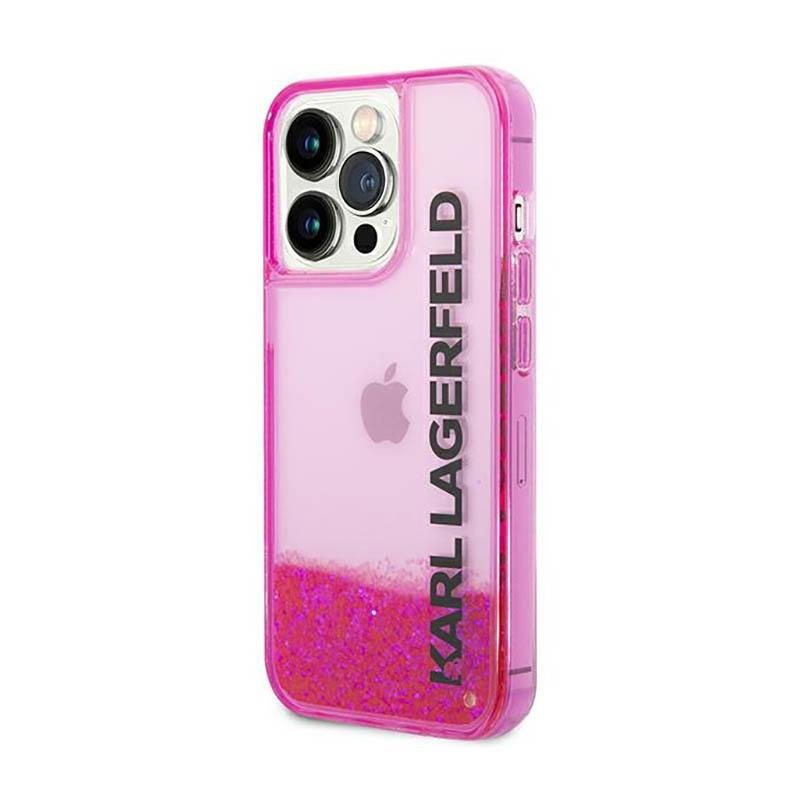 Karl Lagerfeld Liquid Glitter Translucent Elongated Logo Case - Case for iPhone 14 Pro Max (Pink)