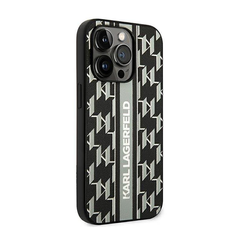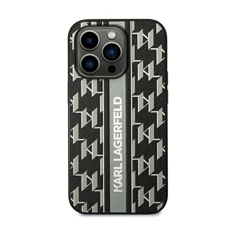 Karl Lagerfeld Monogram Stripe - iPhone 14 Pro Case (gray)