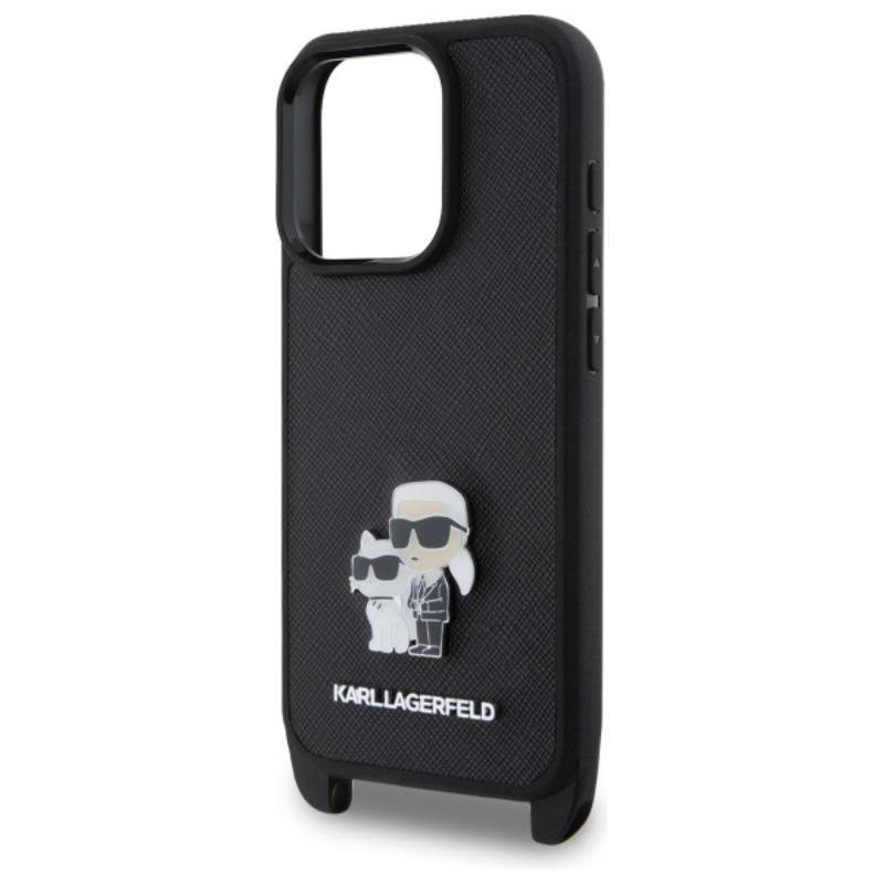 Karl Lagerfeld Saffiano Karl & Choupette Metal Pin CBDY Strap - Case for iPhone 16 Pro (black)