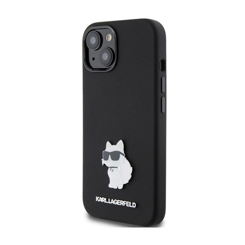 Karl Lagerfeld Silicone Choupette Metal Pin - iPhone 15 Plus Case (Black)