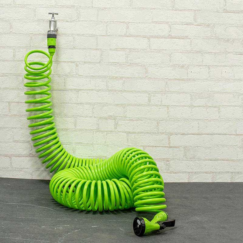 - Kinzo spiral garden hose lets you bring order to any garden. The spiral shape always returns to its original form, so it does not need to be rolled up when stored. In its unrolled state, the garden hose has a length of not less than 30 me