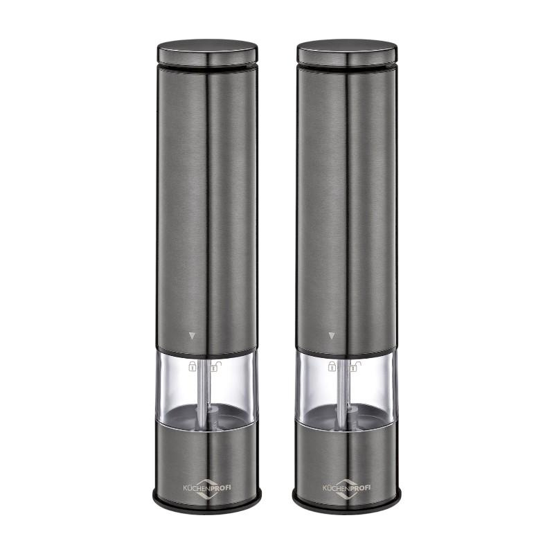 Küchenprofi Boston - Electric Salt and Pepper Mills with Ceramic Grinding Mechanism 23x5 cm Set of 2 (Grey)