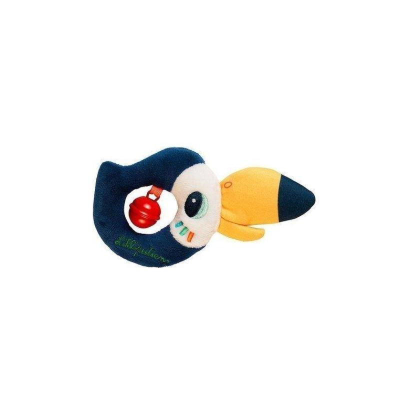 - Plush mini rattle with bell from the collection of Toucan Pablo by Belgian brand Lilliputiens is a remarkable activating toy for babies. The soft toy is shaped like a Pablo Toucan with a grown-up beak, and attached to the grasping hole is an adorable red