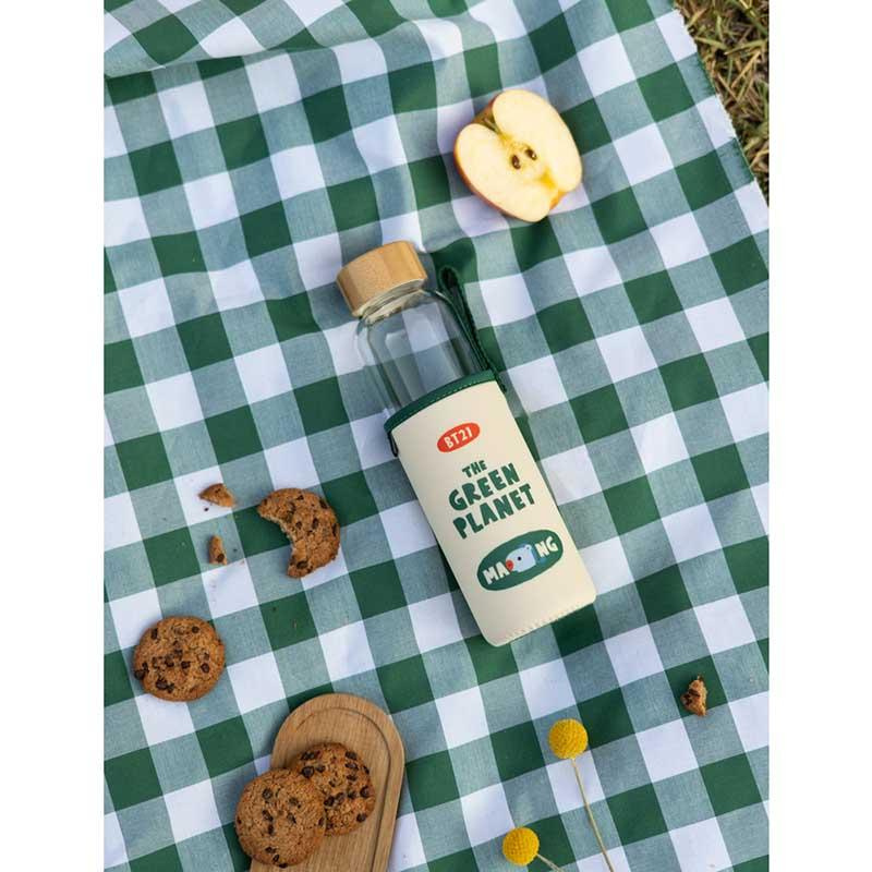 - Reusable glass bottle with Line Friends BT21 Mang motif with a capacity of 500 ml.